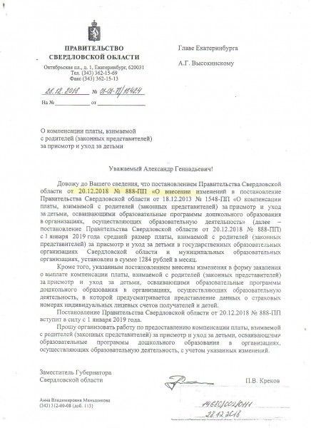 О компенсации, взимаемой с родителей (законных предствителей) за присмотр и уход за детьми